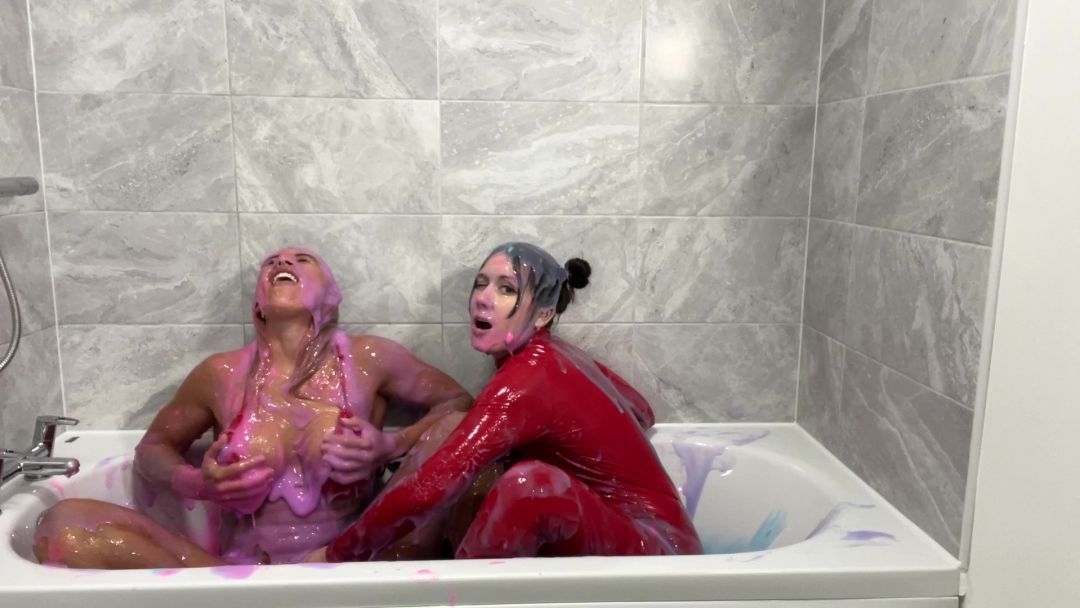 Belle O'Hara and Callie goes full mess mode latex, bubbles, and chaos in the tub! Bath time, but make it dramatic. Latex, gunge, and theatrical flair. glossy latex, vibrant gunge, and pure theatrical mayhem. Expect laughs, surprises, and a very messy finale. Perfect for fans of playful, over-the-top stunts. Thought bubble baths were relaxing? Think again. Belle and I brought the confetti of chaos and I'm still cleaning it out of my hair!