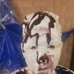 MessyMegan had her head turned into a pie sandwich by Big Bird the Clown